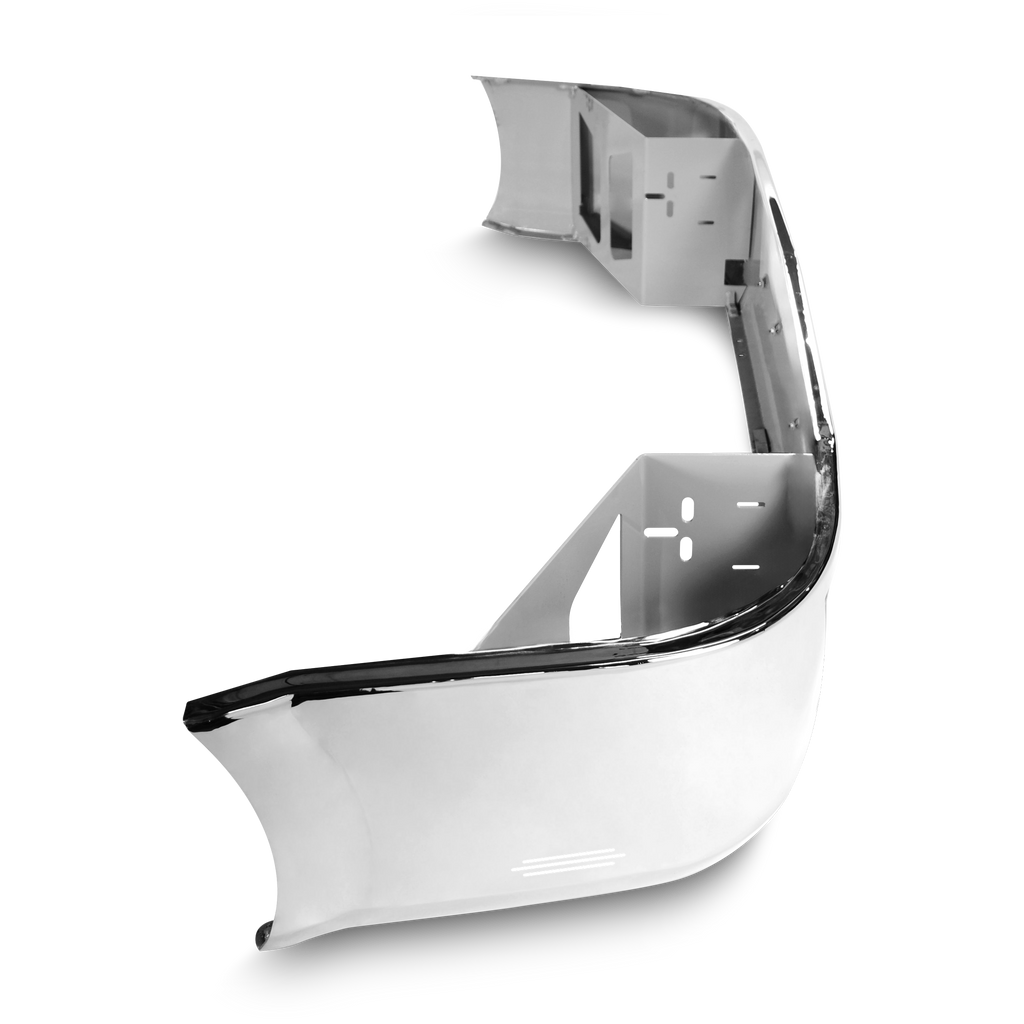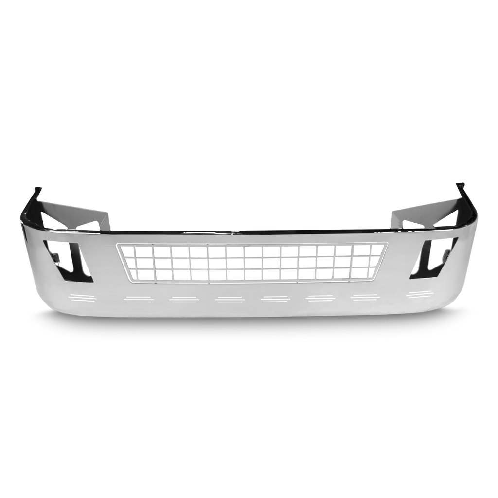 The 18" Chrome Bumper for Volvo VNL (2004-2017) features an aerodynamic style, integrated grille, and fog light holes, along with provisions for 10 hidden light holes. Made from high-quality materials and finished in chrome, this bumper enhances the truck's appearance and functionality. It offers improved visibility and flexibility for additional lighting, making it an ideal choice for truck owners, customization enthusiasts, and professionals seeking both style and performance.