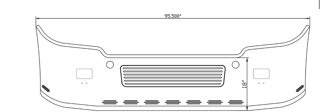 18" Chrome Bumper Freightliner Cascadia 2008-2017 Replaces Factory Plastic, Aerodynamic, with Grille Installed, Bolt, Tow, Fog Light and 9 Hidden Light Holes