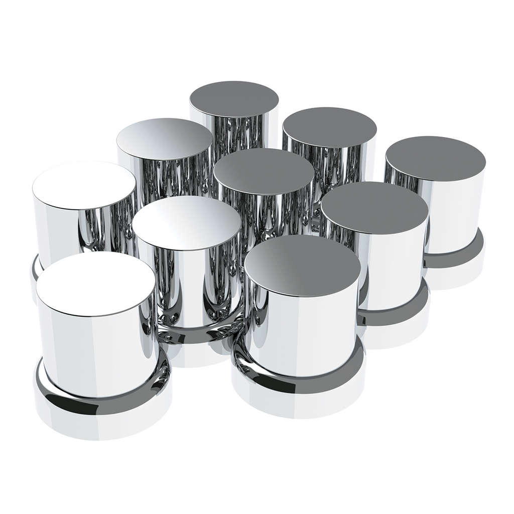 33mm X 2" Chrome Plastic Flat Top Nut Covers With Flange - Push-On (10-Pack)