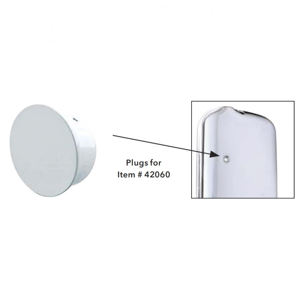 - Chrome plastic mounting hole plugs for use with United Pacific 2005+ Freightliner style mirror covers (item #42060, 42061B, & 42060B).
