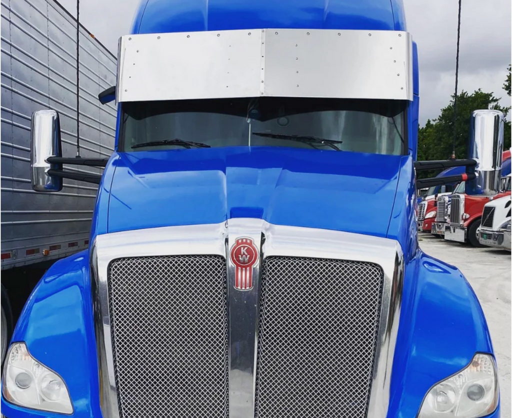 Upgrade your Kenworth T680 with this semi-straight stainless steel visor, measuring 21" x 20", designed for durability, style, and functionality. Equipped with 10 bright 3/4" LED lights, it delivers a bold, illuminated appearance while providing reliable sun and glare protection.
