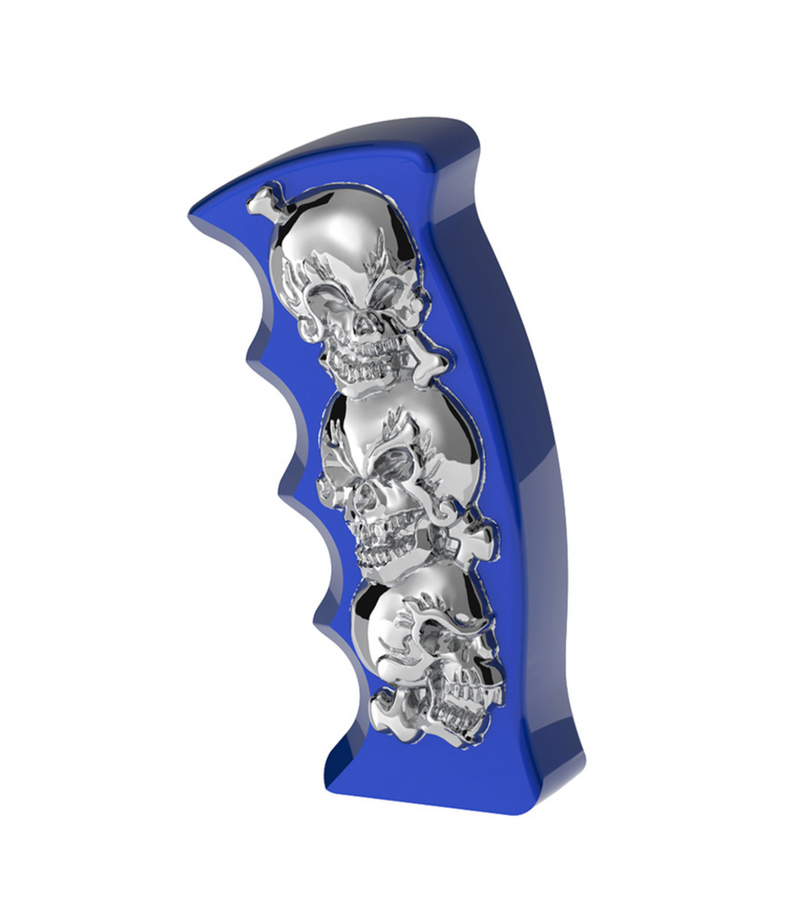 Thread-On Skulls Pistol Grip Gearshift Knob With 13/15/18 Speed Adapter - Indigo Blue/Chrome