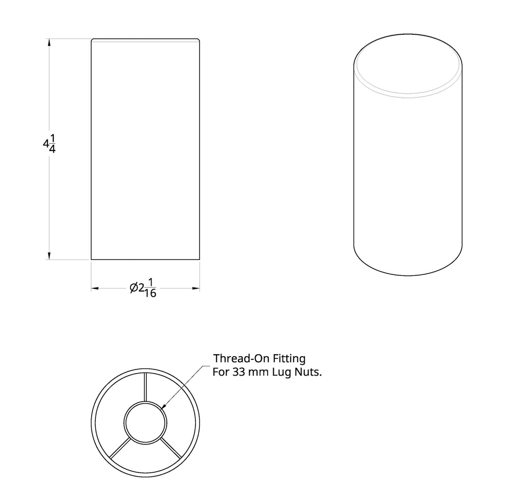 33mm X 4-1/4" Chrome Plastic Tall Cylinder Nut Cover - Thread-On