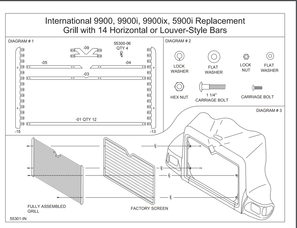 Grille (International 9900/Ix 5900I) W/ 14 Louv...