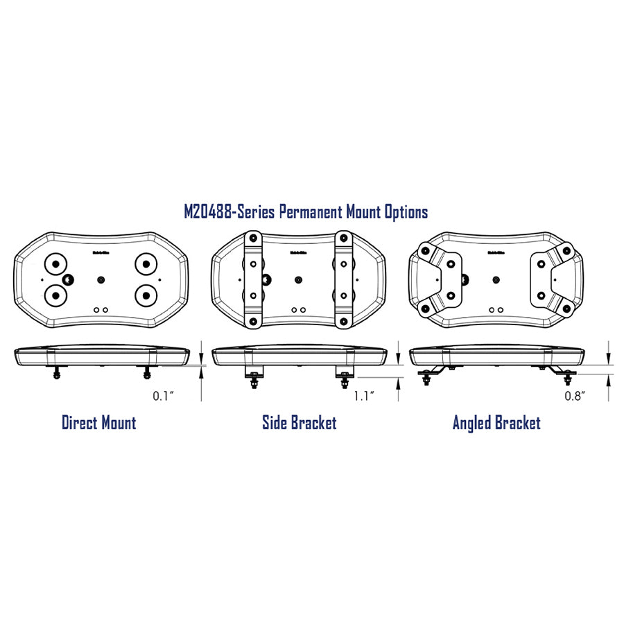 The M20488YWCL is a low profile flashing warning mini-lightbar. It utilizes high intensity amber and white LEDs behind a clear lens with a black top (half the bar lights amber, half lights white).. It has 18 selectable flash patterns and complies with SAE J845 Class 1 and CA Title 13. The 15″ cable contains 3 wires, blunt cut, and allows for discreet programing of the flash patterns. This permanent mount model comes with 3 mounting options: direct mount, side bracket, and angled bracket. The M20488YWCL features a polycarbonate lens and housing and is backed by a 5-year warranty.