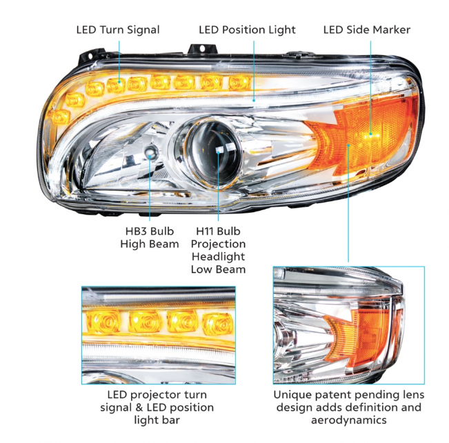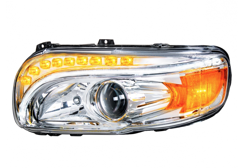 Chrome Projection Headlight With LED Turn & DRL For Peterbilt 389 (2008-2023) & 388 (2008-2015)- Driver