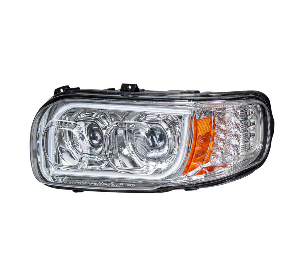 High Power LED Chrome Headlight With 16 LED Turn & 57 LED Bar For 2008-2024 Peterbilt 389- Driver