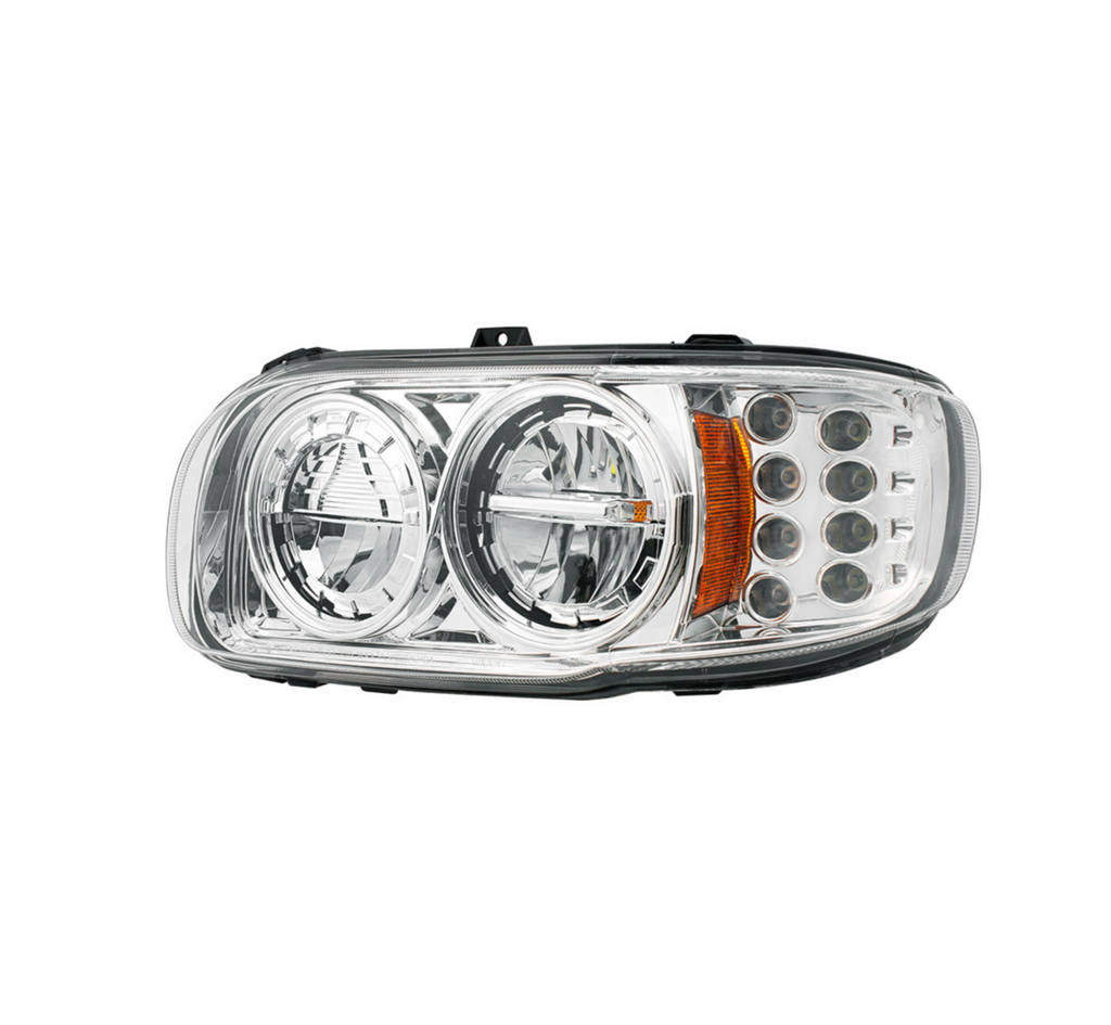 High Power LED Chrome Headlight With 8 LED Turn & 4 LED Position Light For 2008-2024 Peterbilt 389-Driver
