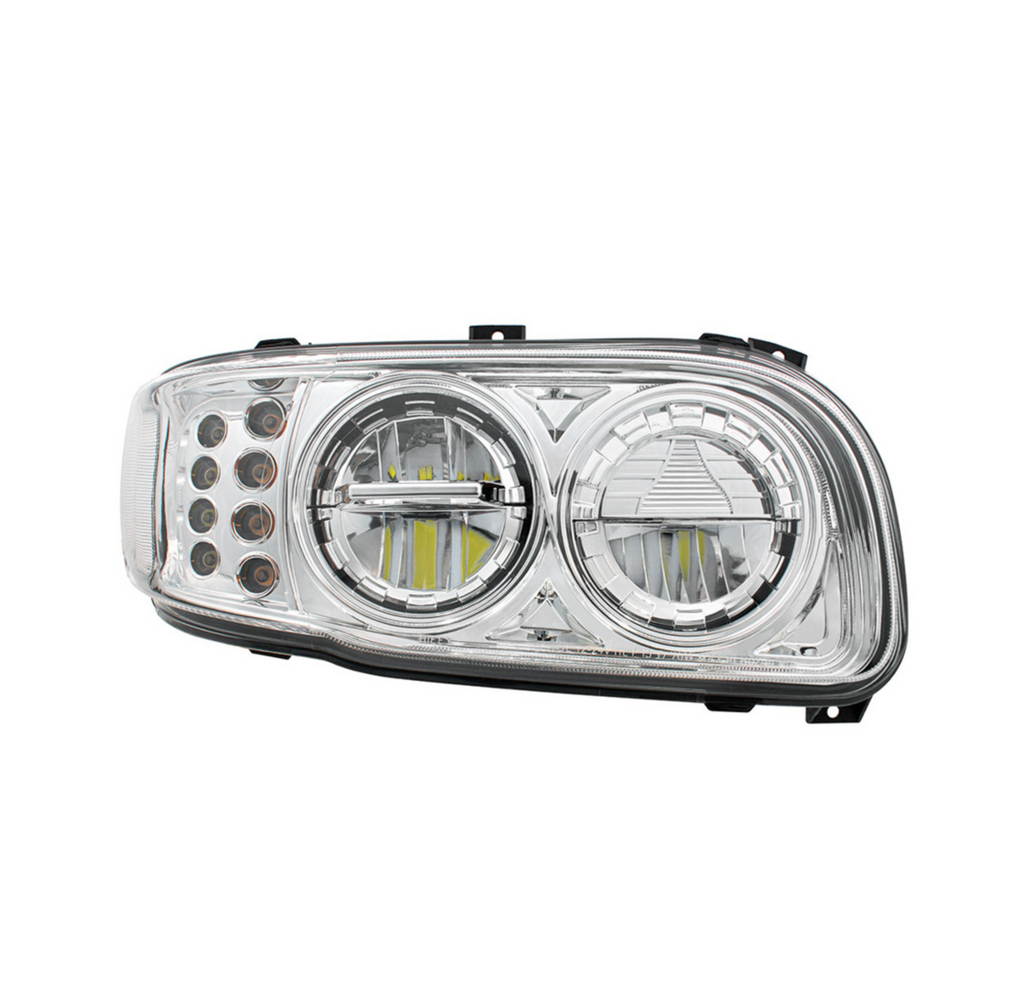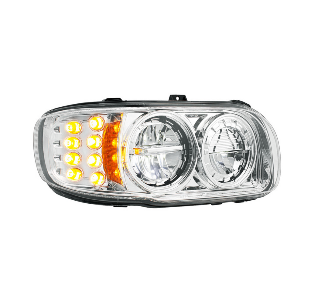 High Power LED Chrome Headlight With 8 LED Turn & 4 LED Position Light For 2008-2024 Peterbilt 389-Passenger