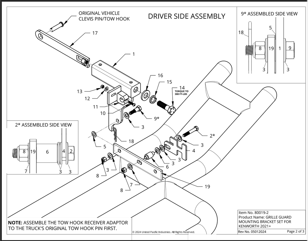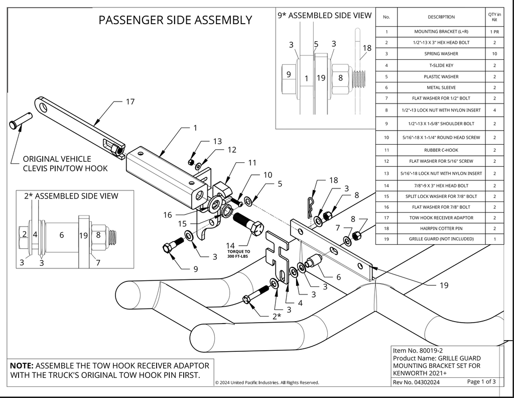 - Installation may require use of vehicles original tow hook pins/hardware.