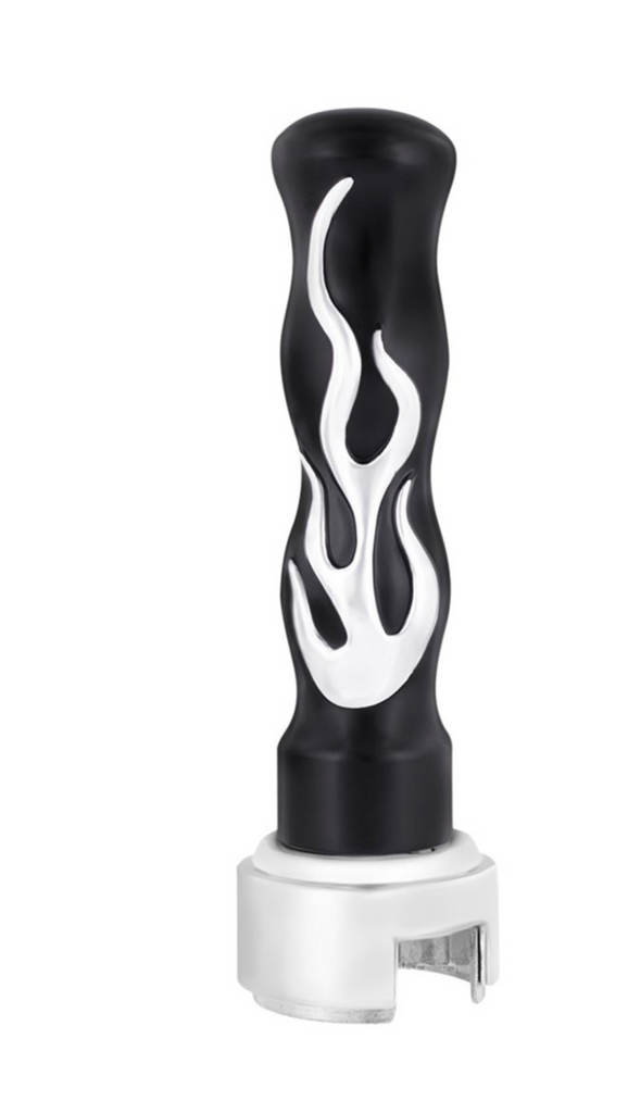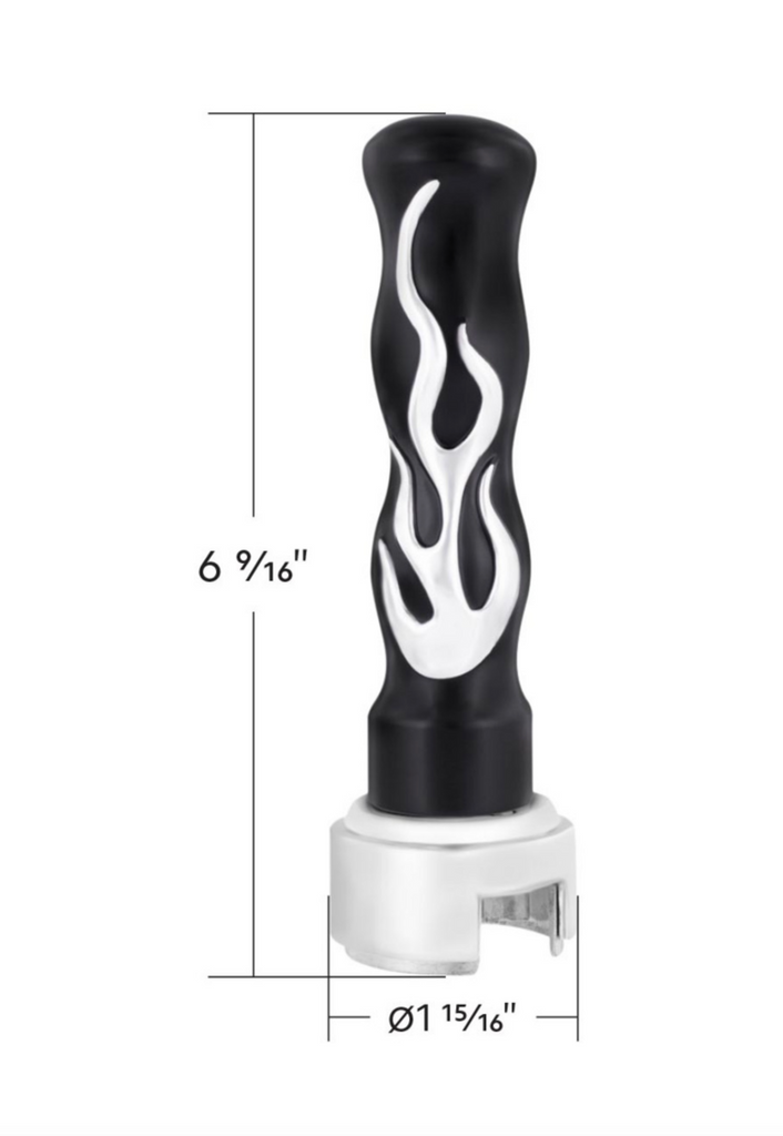 Thread-On Flame Gearshift Knob With Adapter For Eaton Fuller 13/15/18 Speed - Black With Chrome Flame