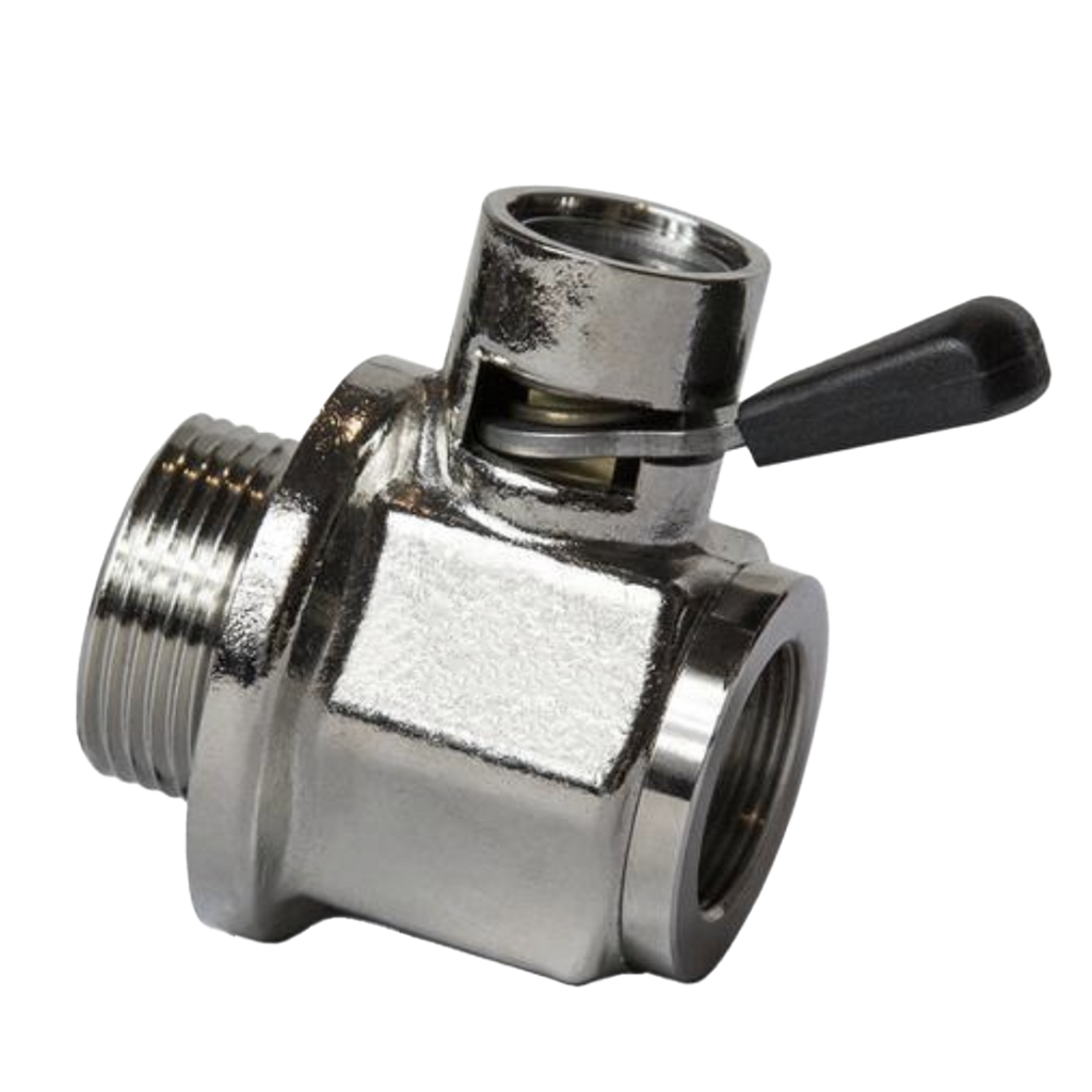 This valve replaces the standard oil drain plug. To drain oil, lift the lever and rotate it a quarter turn with your finger. To close, return the lever to its original position; it will automatically lock in place. The valve is constructed from nickel-plated brass for durability.