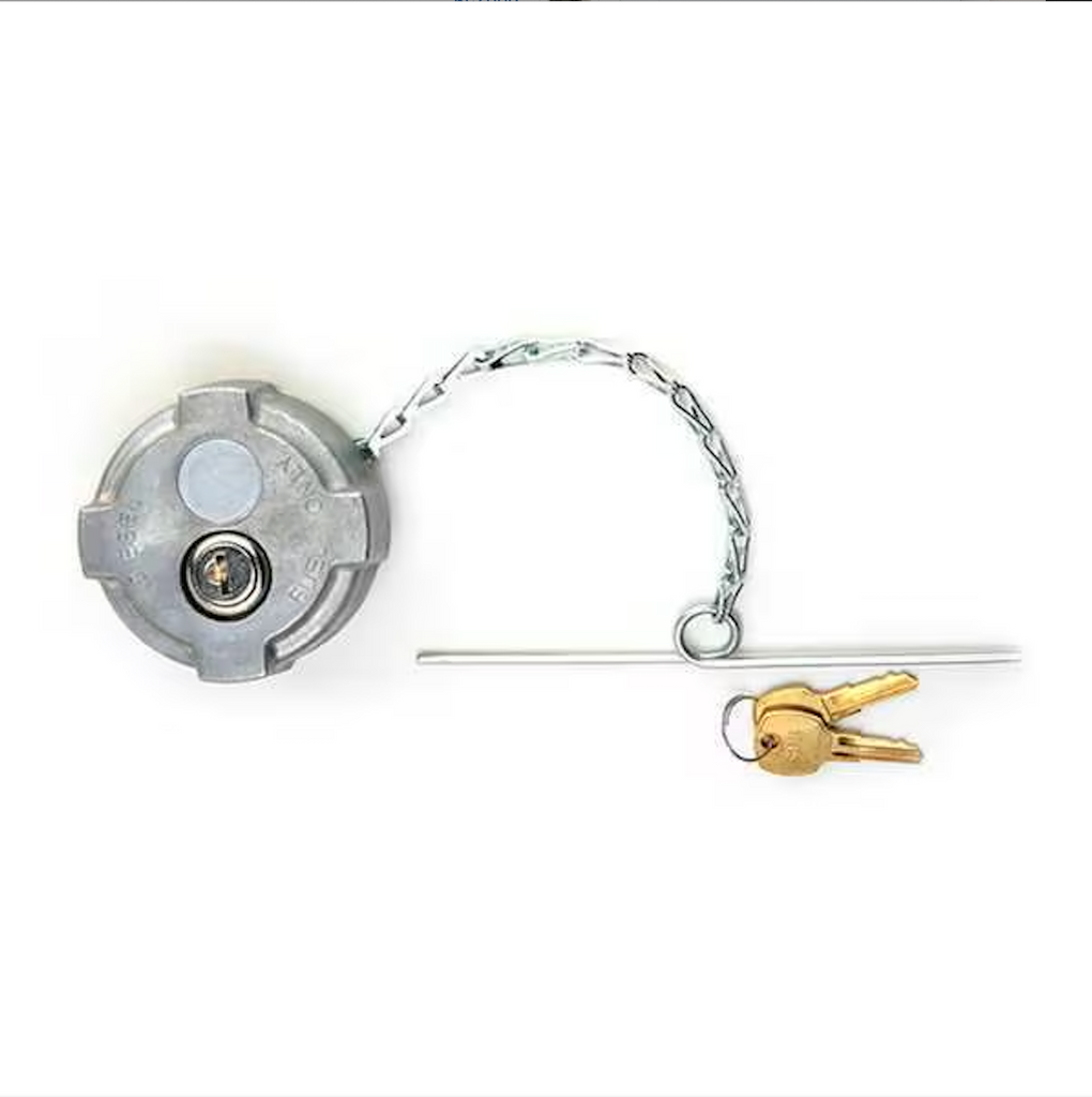 3" Aluminum Locking Fuel Cap Fits Volvo, Mack and International, Pressure Relief, 8" Chain and 6.5" Bail