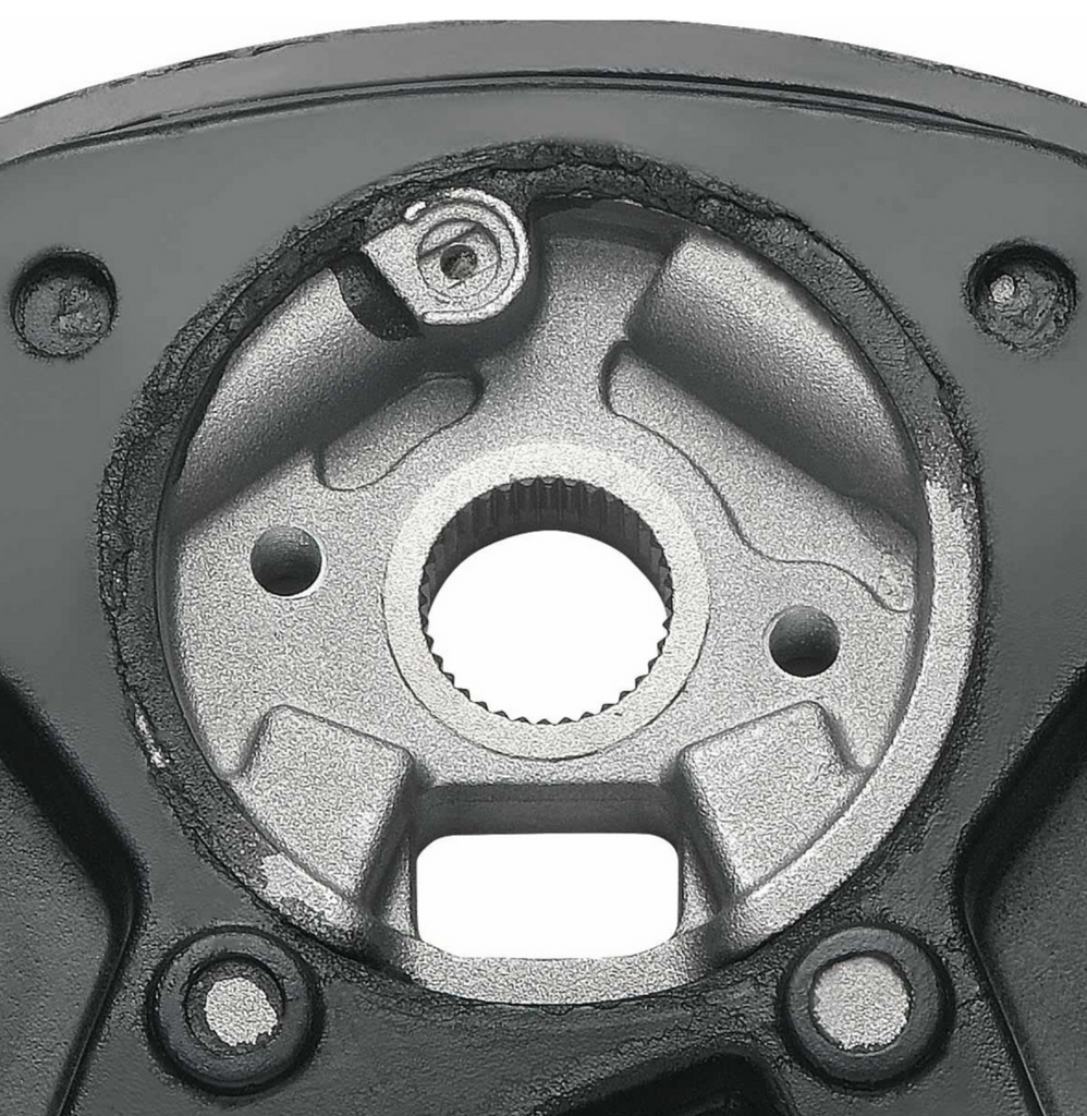 - Heavy duty aluminum center with 36-spline mounting adapter, direct drop-in install to steering shaft.